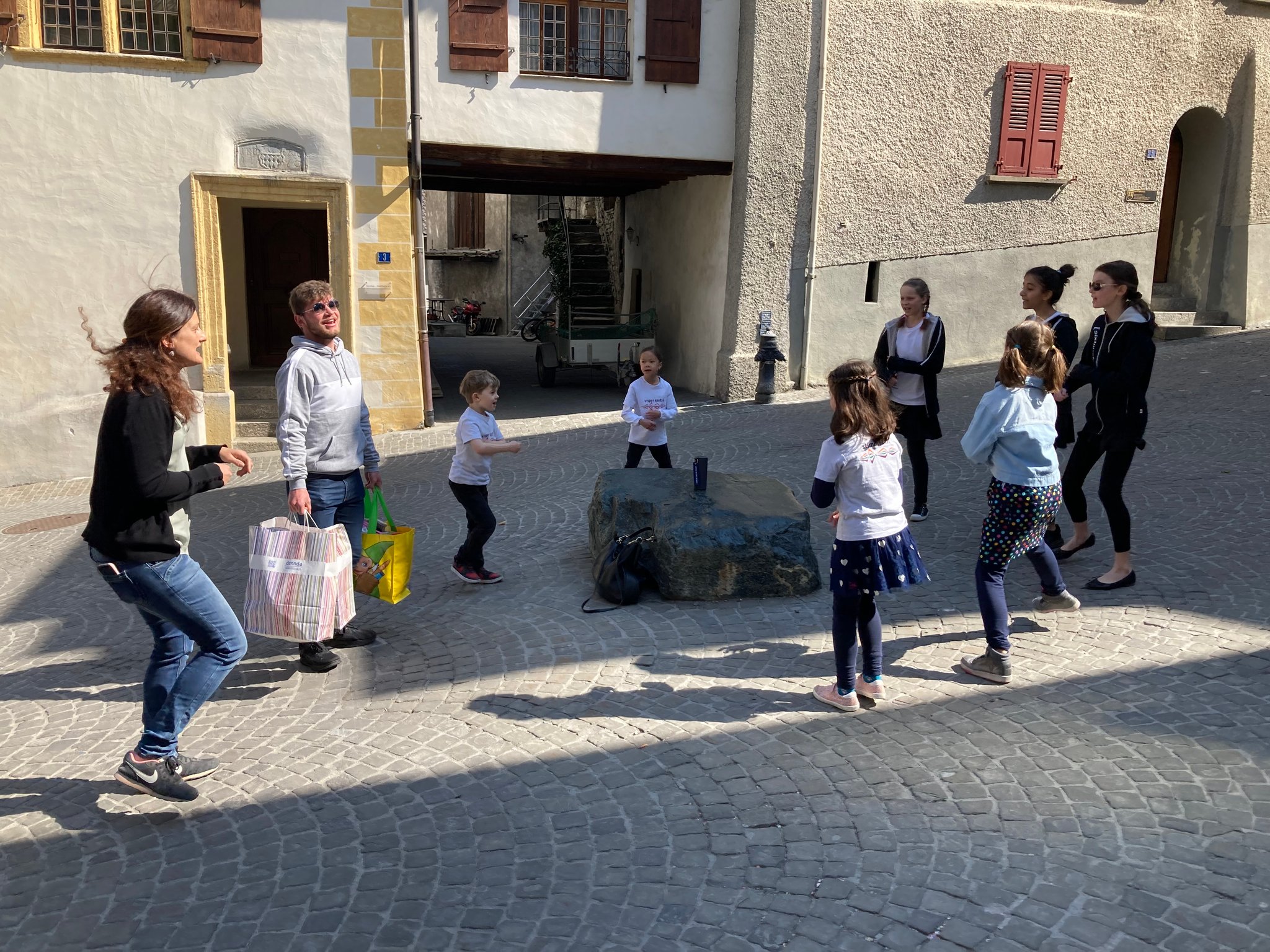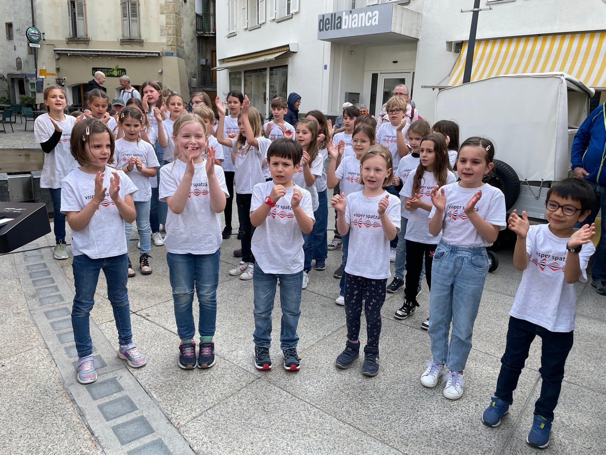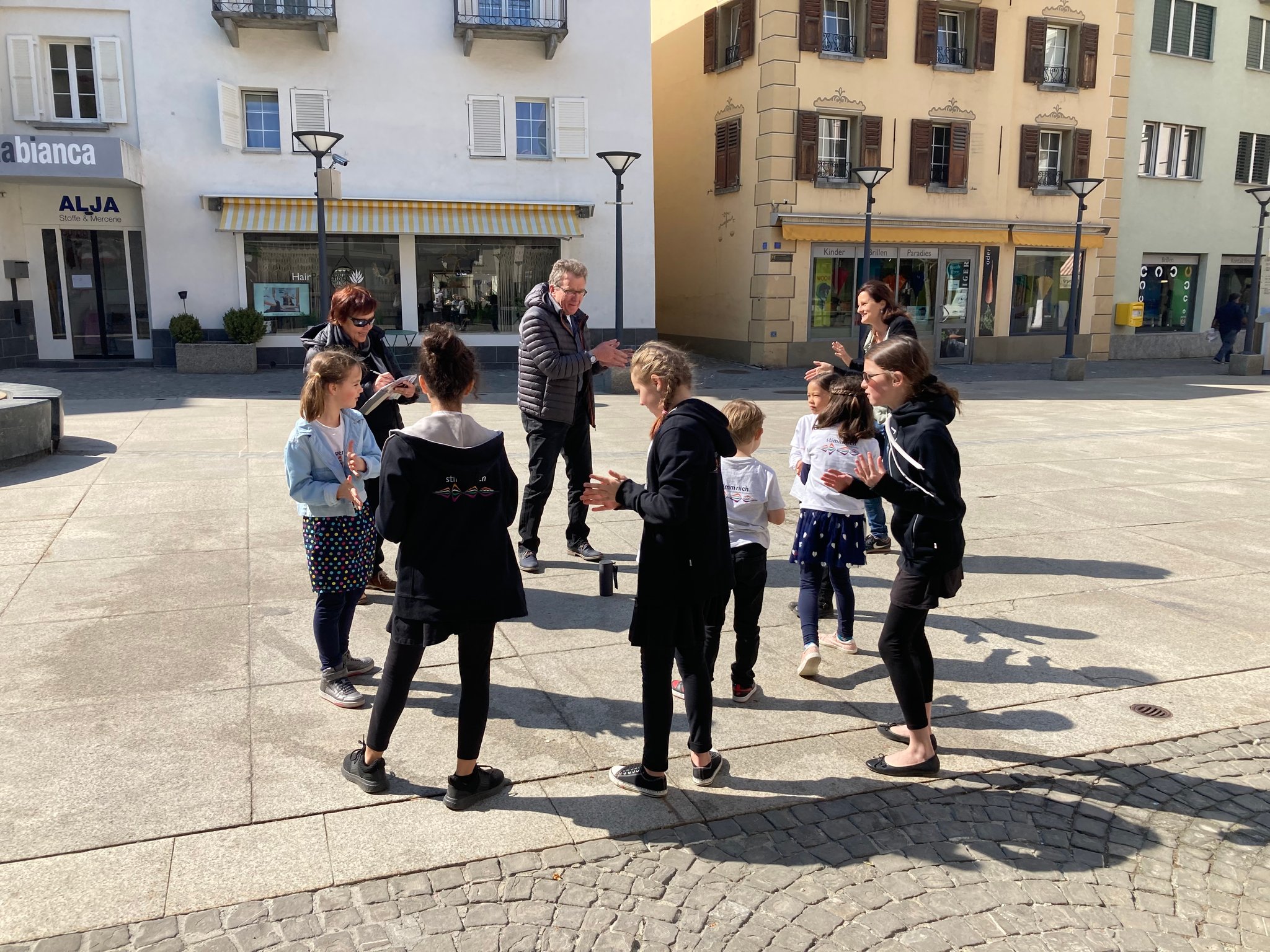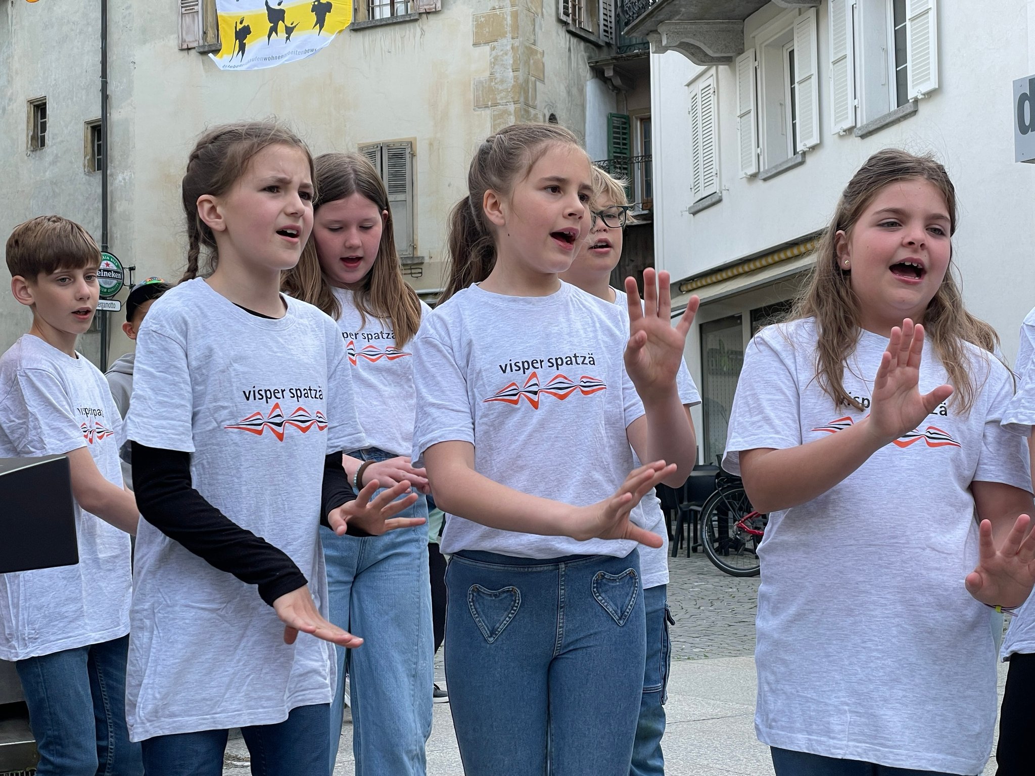Nach dem Ausflug in die Westschweiz galt es am 24.5. das einheimische Publikum mit einigen Ständchen zu beglücken. Diesmal waren alle drei Chöre mit von der Partie, die kleinen Spatzä, die grossen Spatzä und die Sixtiins... trotz eher kühlem Wetter und Wind gaben alle ihr Bestes, die Anwesenden mit Gesang und Tanzeinlagen zu begeistern.